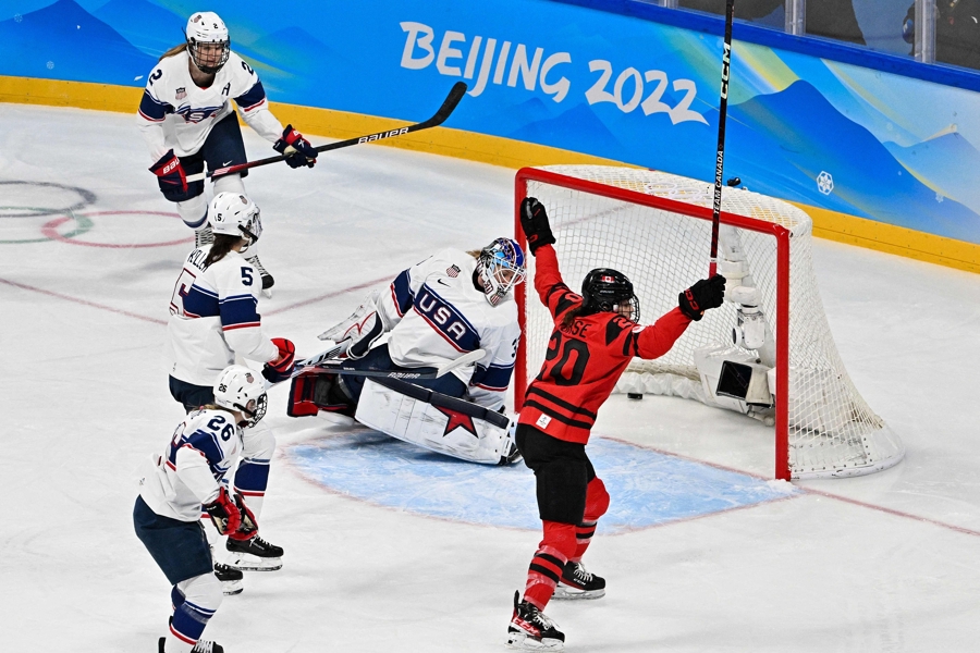 在女子冰球界限,好意思国队(白)和加拿大队(红)号称一双夙敌